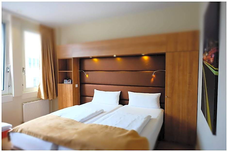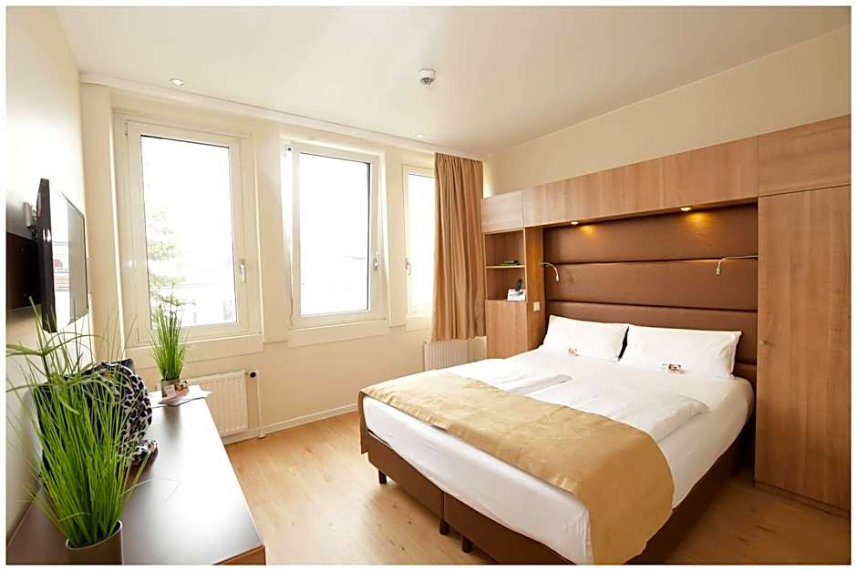 Stylish modern room which features cable TV, has an private bathroom and offers city views.